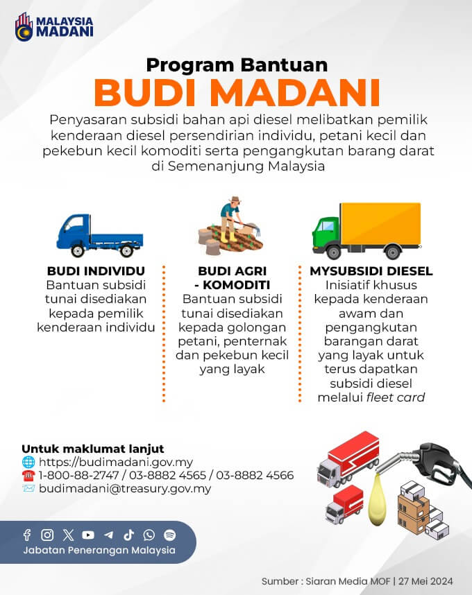 | Sasaran | Pemilik kenderaan diesel persendirian (bukan T20) di Semenanjung | Petani/pekebun kecil berdaftar (hasil RM50k–RM300k setahun) |
