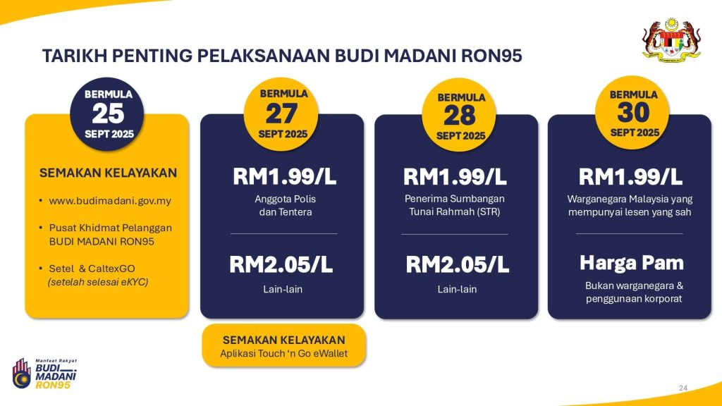 - Semakan Kelayakan: budimadani.gov.my (menu BUDI MADANI RON95 → Semak Kelayakan Individu).