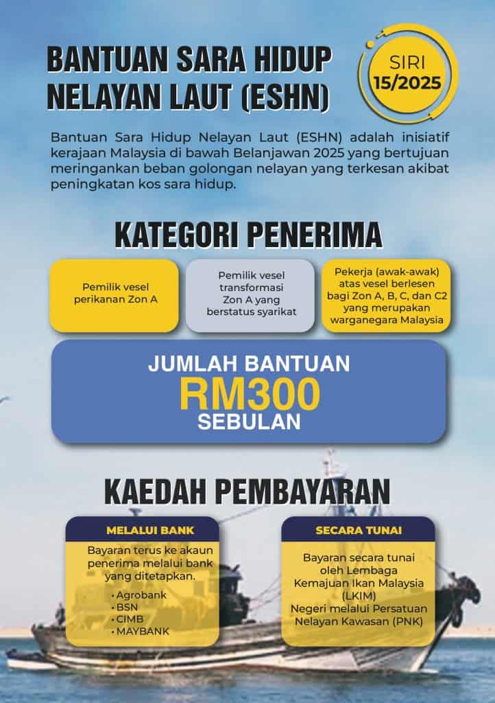 Elaun Sara Hidup Nelayan (ESHN) 2025 merupakan antara bantuan penting kerajaan bagi memastikan kebajikan nelayan di Malaysia terus terjamin.