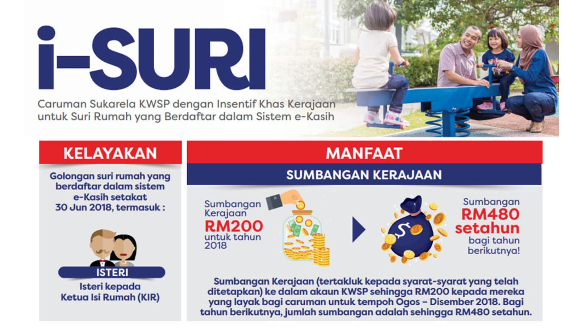 - Insentif Kerajaan: Caruman tambahan sehingga RM480 setahun diberikan oleh kerajaan untuk pencarum i-Suri yang layak.