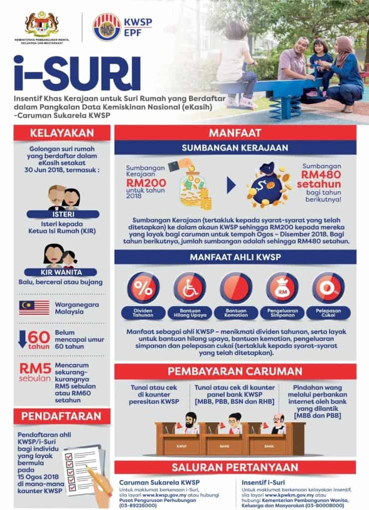 - Cawangan KWSP: Isi borang pendaftaran i-Suri dan serahkan di kaunter KWSP.