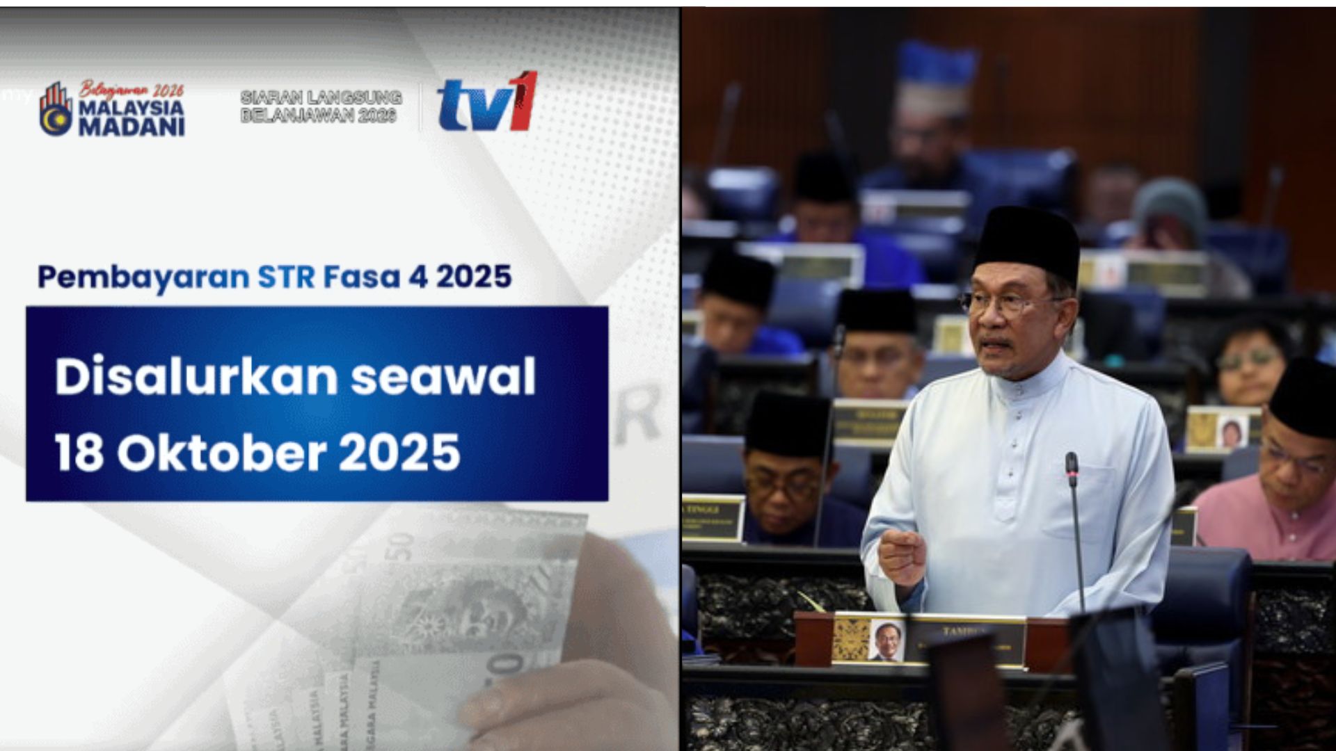 Ini merupakan bayaran terakhir STR bagi tahun 2025 yang dijangka memanfaatkan lebih 8.5 juta penerima di seluruh negara.Perkara ini telah diumumkan oleh Perdana Menteri pada pembentangan belanjawan semalam.